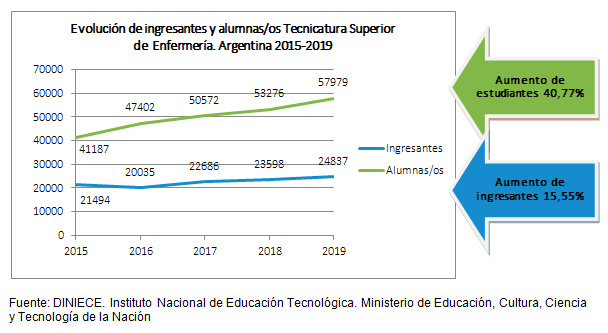 Las intervenciones realizadas por el PRONAFE a través de las becas Progresar, las mochilas técnicas con equipamiento completo, la capacitación y la formación docente continua; produjeron un impacto en la formación de enfermeros y enfermeras en cuanto a la cantidad, el aumento de la retención de estudiantes, y de una tasa de promoción efectiva. El número de egresados y egresadas y su calidad profesional, es lo que conlleva a una mejora en la fuerza de trabajo de Enfermería en el País.